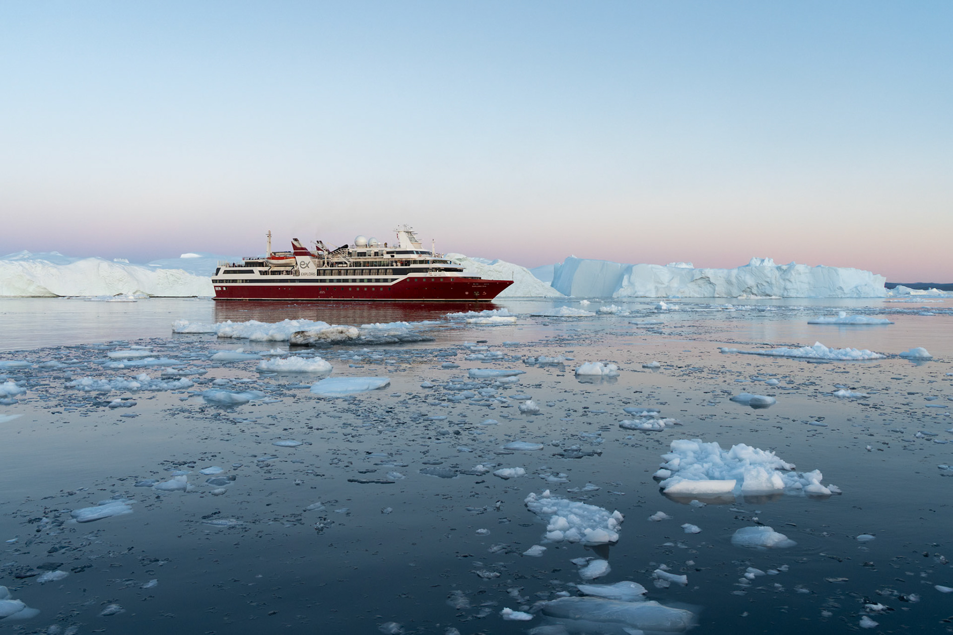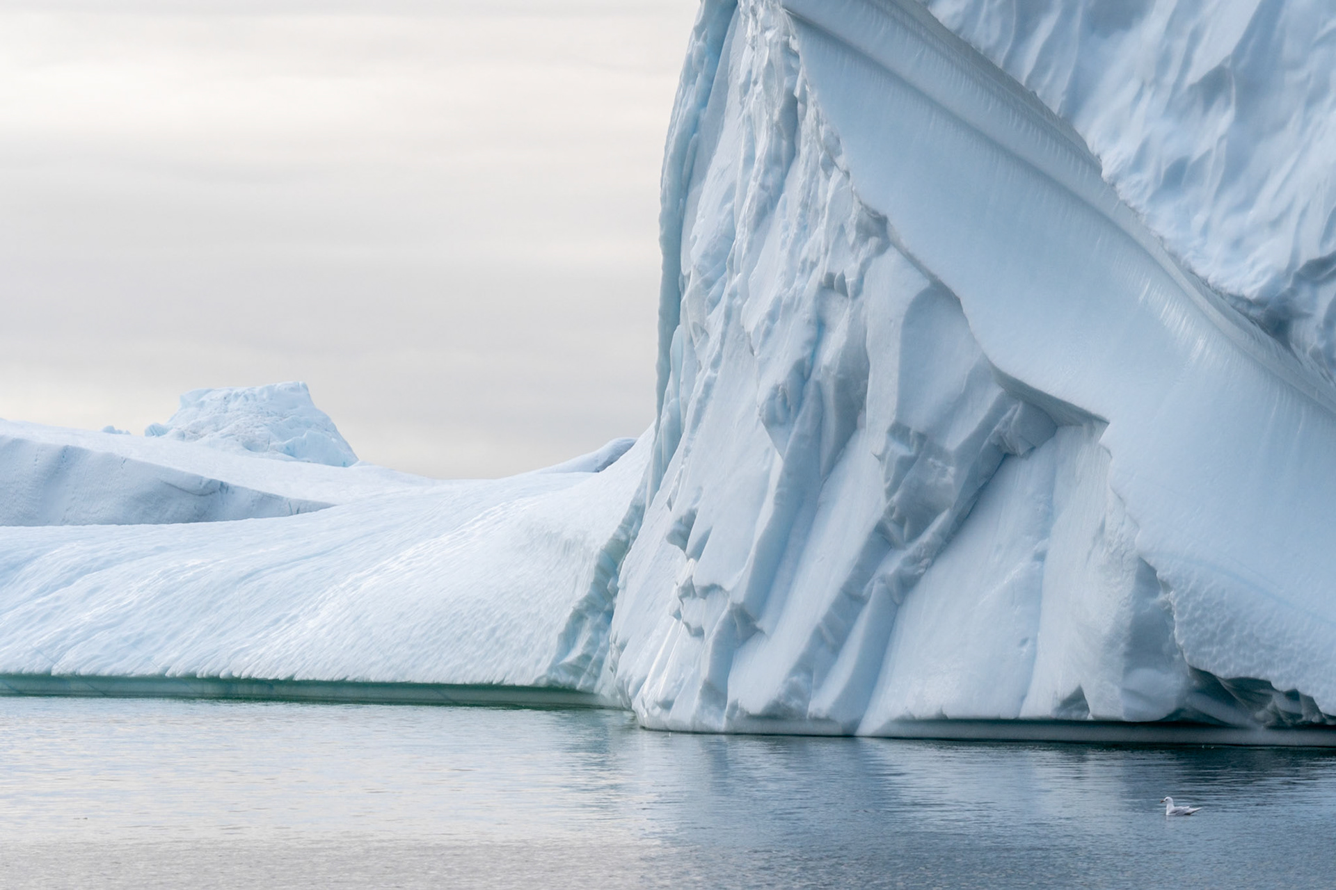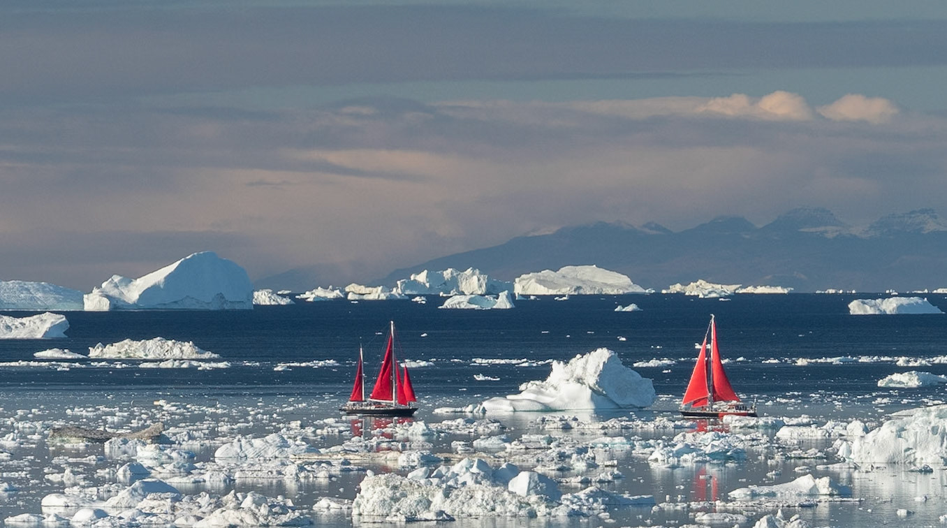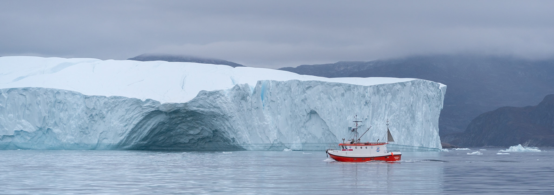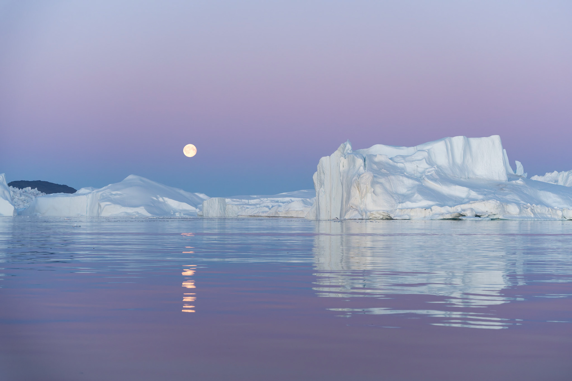 South of Ilulissat is an ice fjord from which countless icebergs drift northwards. There are three hiking trails around the town of Ilulissat from which you can see the ice fjord and icebergs from a distance.
